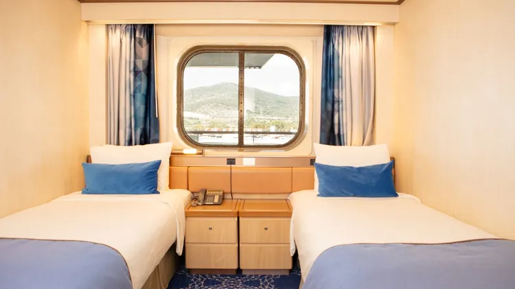 Offer a cosy space with mesmerising sea views. They accommodate 2 to 4 guests, with a mix of lower beds, sofa beds, and bunk beds, depending on the cabin layout. Each includes a bathtub. XBO cabins feature a window with an obstructed view.
