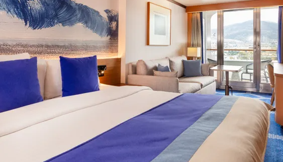 Offer spacious comfort with a living area, shower, and balcony, along with concierge service and access to our VIP spaces. They accommodate up to three guests with two lower beds and a single sofa bed.
