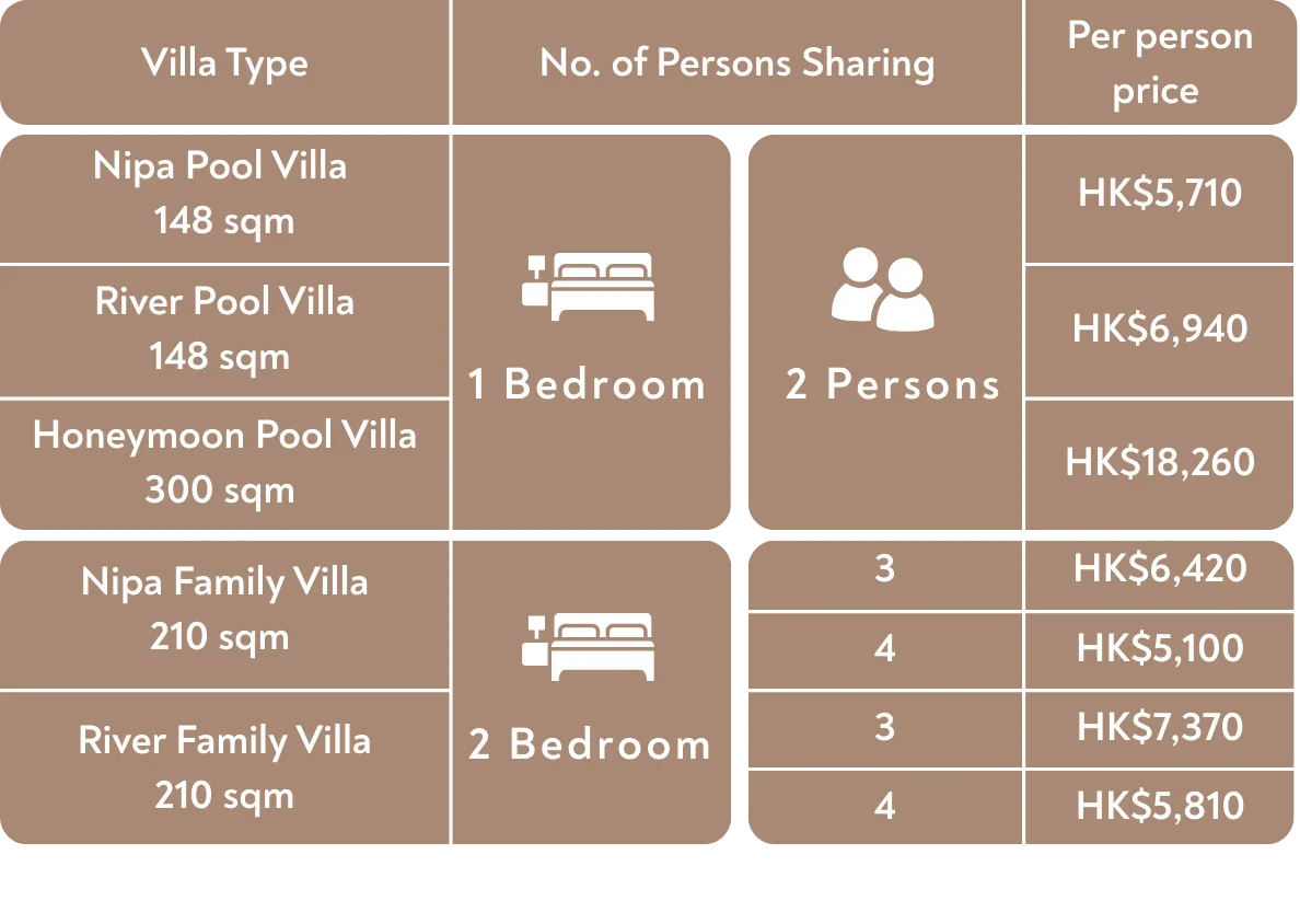 - Complimentary upgrade to the next villa category, subject to availability at check-in
